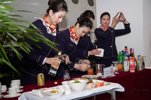 在大赛颁奖典礼的现场,客舱乘务员以伏特加、龙舌兰等作为基酒配以果汁、汽水精心调制各种鸡尾酒并邀请在场嘉宾品尝。随后展示了天津航空全新两舱餐食、餐具。餐食分为第一餐、落地餐、简餐三个类别,每个类别均有中西式两种选择。西餐主要以牛排、蝴蝶面、麦片等西方经典餐食为主;落地餐中式的呈现,主要以米、面、粥等中国传统餐食为主;两种餐食均搭配红酒、甜品、水果,能够让旅客在漫长的高空旅途中拥有更多舒心之选。另外,餐食配以"方·圆"为概念的貔貅骨瓷餐具,以中华传统的太极图腾为主轴,搭配抽象貔貅图案,展现中华文化内涵。在天航12月21日开通的第三条中远程洲际航线天津=重庆=奥克兰的航班上,新的餐食与餐具正式亮相,将天津航空的优质服务带入风帆之都。