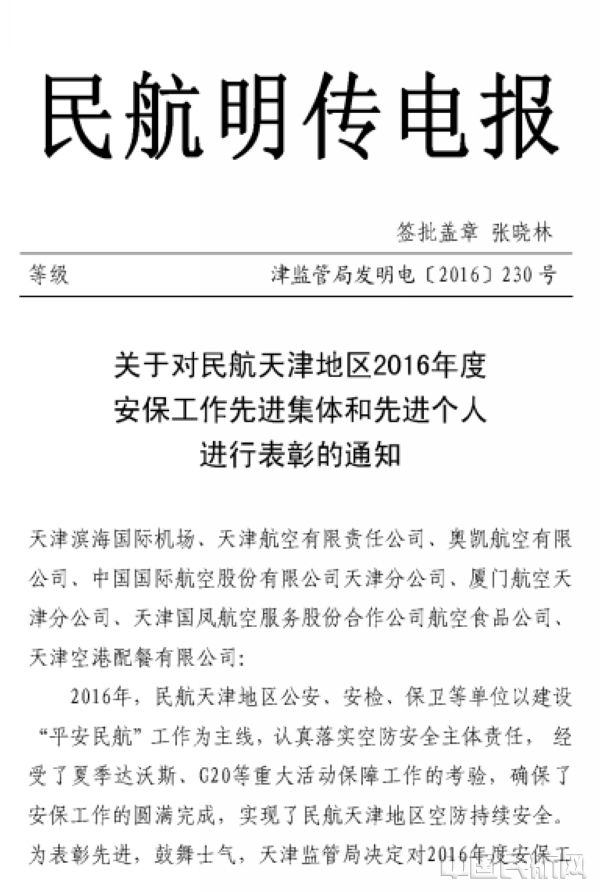 中国民航网 通讯员温雅倩 报道:2016年,天津航空全面贯彻“安全第一”的安保方针,通过一系列举措,提升全员空防安全意识,不断完善空防安全体系,为健康、稳定的民航安全环境贡献了一份力量。