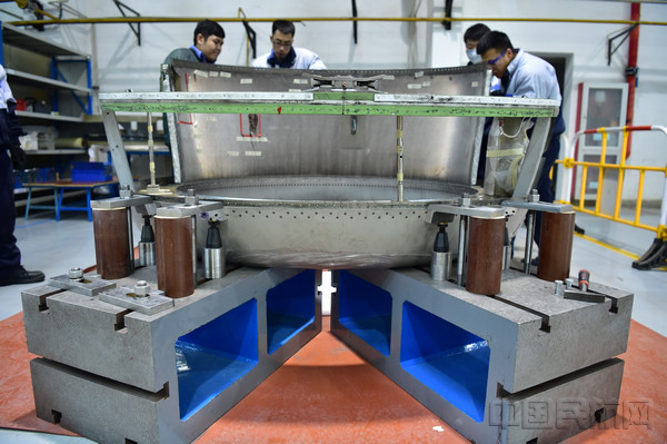 由于没有任何数据和可借鉴的案例参考,Ameco北京基地飞机大修产品部结构车间的工作人员凭借丰富的经验和精湛的技艺,耗时两周时间为该进气道修理工作“量身订制”最合体的工装设备,其中包括8套进气道工装和4套为进气道固定形状和位置的型架。这套工装确保了后续修理工作的顺利完成。