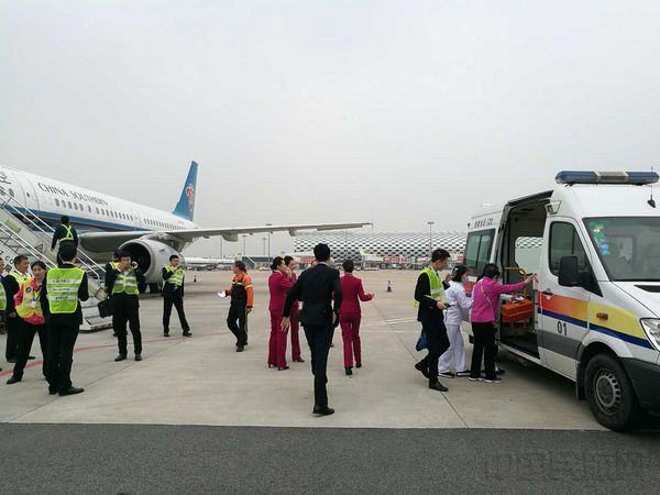 15:34分,飞机顺利落地深圳,深圳分公司各协调运行保障部门以及机场急救用车迅速到位,进行全力救助和保障,目前、老人已经安全送抵医院。