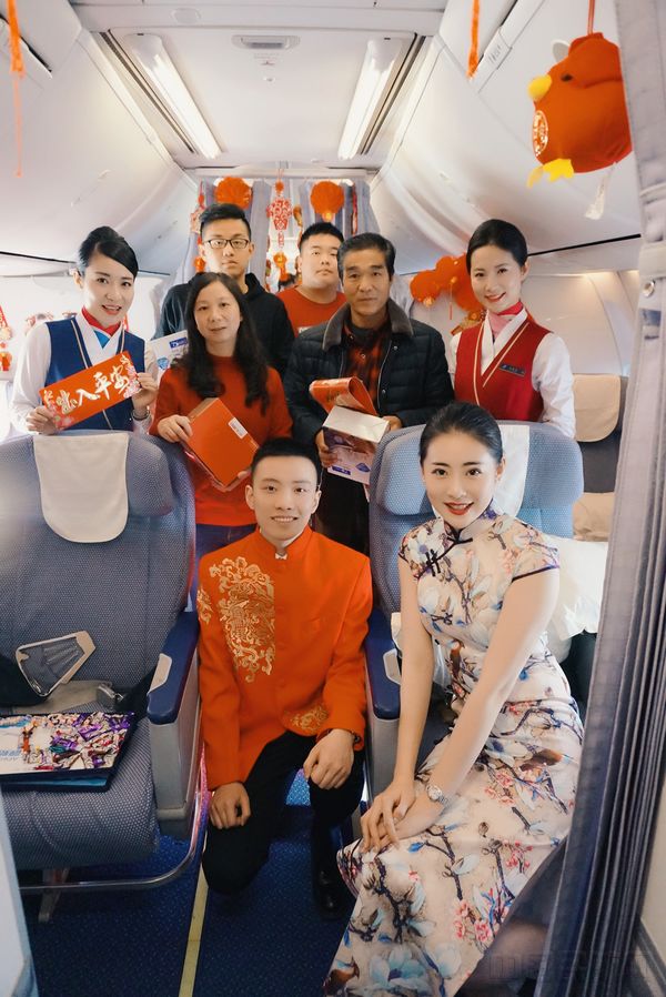 记者自南航贵州公司云鹭乘务组了解到,为让旅客在万米高空也感受到中国传统佳节的“年味儿”,将心底最想说的话、最真切的祝福借新春佳节这一契机进行传递,她们安排了形象好、气质佳、服务优的“暖女”、“暖男”执飞春节航班,还特意准备了巧克力、糖果、新年“许愿信箱”、“许愿大礼包”等惊喜,让归家途中的人们在万米高空许下新年愿望,并协助旅客通过机上广播进行朗读和传递。同时,她们还用大红的福字、昂首的金鸡、象征平安幸福的福娃等吉祥物品装饰客舱,喜庆的氛围让旅客们倍感轻松、舒适与愉悦。