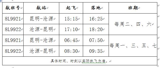 中国民航网讯:祥鹏航空昆明=沧源航线,自2016年12月8日开通以来深受广大旅客喜爱。为给往返于两地的旅客带来更多便利,祥鹏航空于2017年2月1日在原来每周二、四、六执飞的基础上,加密为每天执飞。具体航班时刻如下: