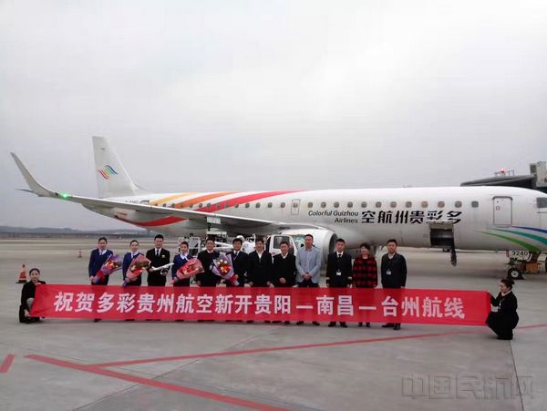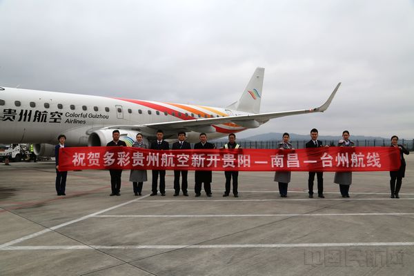 中国民航网 通讯员潘玲 报道:2017年2月6日,随着一架多彩贵州航空E190飞机GY7113平稳降落在台州路桥机场,标志着贵阳-南昌-台州航线成功首航正式投入了运营。这是多彩贵州航空连接西南地区与华东地区的又一条新航线,进一步完善多彩贵州航空航线网络布局,助力贵州、江西和浙江三省社会经济、文化、旅游的交流和发展。