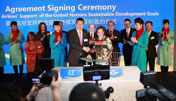 此次厦航和联合国签署可持续发展目标合作协议,标志着厦航成为第一个与联合国建立合作关系的中国航空公司,也是全球第一个与联合国开展可持续发展目标合作的航空公司。