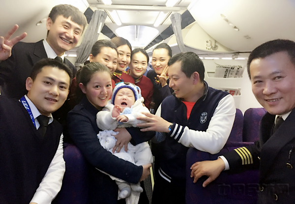 3月7日,在执行北京飞往大连的CA8908航班时,正在像往常一样迎客的我,突然被一对面容亲切的年轻夫妻和他们怀中白嫩可爱的婴儿宝宝深深吸引。年轻妈妈轻声地问我:“您是乘务长吗?孩子太小坐飞机有可能会闹,我准备了些糖果,希望你能帮我送给其它旅客。”这位母亲竟然如此有心,我随即将她手中的糖果接下:“您太贴心了,能为你们服务,是我们的荣幸,感谢您的信任,我门一定妥善安排……”
