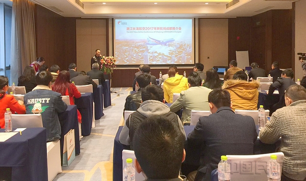 浙江长龙航空商务委员会副主任陈新立在会上致欢迎辞,商务委员会市场部副总经理张黎针对长龙航空品牌、航线及产品做了介绍。3月26日,浙江长龙航空将开始执行2017年夏秋季航班计划,新开航线12条(其中独飞航线9条),共执行航线46条。西南地区在夏秋换季后,由成都始发的航班在成都=襄阳=杭州的基础上新增成都=邯郸=大连、成都=济南=大连、成都=凯里=杭州航线;在贵州地区的通航城市有贵阳、凯里、遵义、安顺、毕节、兴义、黔江等7个航点;在云南地区的通航城市有昆明、丽江、西双版纳等3个航点。以上航线的开通将有力促进当地经济社会发展,更好地满足西南地区旅客的商务、旅游出行。