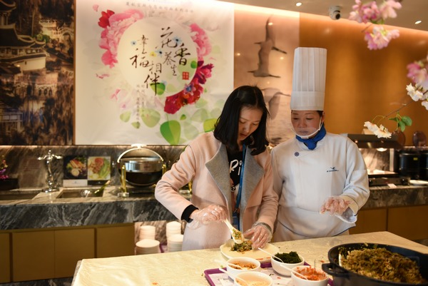 中国民航网 通讯员唐珠婷 报道:3月20日,恰逢国际幸福日,厦航空厨在厦门高崎机场T3头等舱休息室开展主题为"花香养生,幸福相伴"的空厨面对面活动,采用樱花、玫瑰花、桂花、洛神花等,以花入馔制作精致甜品,为旅客带来一场鲜花盛宴。