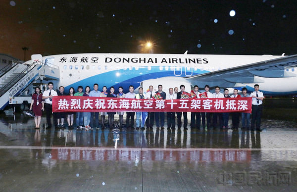 中国民航网讯:东海航空有限公司的第15架波音737-800飞机于5月9日凌晨顺利抵达深圳宝安国际机场,这是东海航空今年引进的第二架客机,机队规模继续保持平稳较快增长。接机现场,东海航空董事会董事王世翔带领公司各级领导到机坪迎接新飞机到来,并慰问了机组人员。