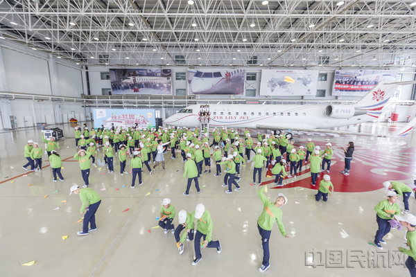 中国民航网 通讯员曹晶 报道:5月18日,中一航空在自己的公务机机库内举办了一场“放飞梦想、拥抱蓝天”公益活动,提前与辽宁省光明学校孩子们欢度儿童节。
