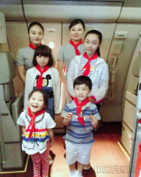 小朋友与乘务员合影留念