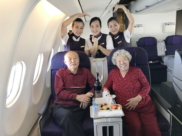 关于爱的故事总是会让人心生喜悦,何况这是经历半个世纪的爱的传奇。于是,为这对老夫妻准备一场“空中金婚纪念”的想法,就如同一颗小水珠,滴进了乘务员们的脑海里,荡漾起一阵涟漪……