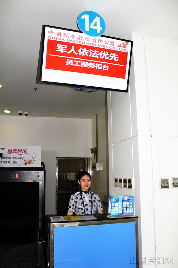 6月7日,接到民航局文件以来,中国联航南苑机场地服部、安检站等各部门便积极沟通协商制定军人旅客保障流程,并向全员宣贯下发《军人依法优先实施方案》。6月9日便正式投入实施阶段。在值机区域设立14号“军人依法优先”专属柜台,办理的登机牌上贴有“军人依法优先”黄色标签,每名军人及可携带的2名家属凭此黄色标签进入安检和登机口专属同道。安检区域入口处摆放“军人依法优先”指引标识牌,1号安检通道作为军人优先通道,与超经舱旅客共用。