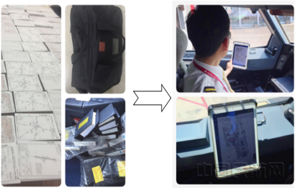 撤除机载纸质手册在实现节能减排的同时也极大减轻了人员工作负荷、提高安全运行系数:IPAD替代厚重的纸质飞行资料,可帮助飞行员快速查找所需数据,减少人工查阅失误;手册管理员、飞行资料员利用后台推送EFB数据替代传统的纸质手册编辑、排版、印刷、换页等一系统工作,能有效提高工作效率、降低保障差错。
