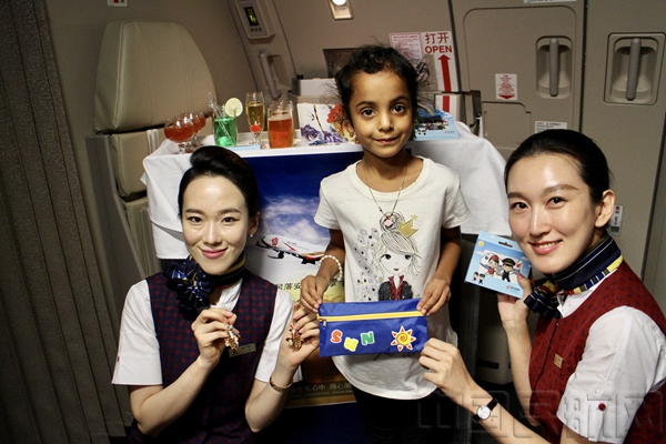 小朋友跑到乘务员面前,用稚嫩的声音问到:"阿姨,飞机怎么能装这么多人和货物呀,它是怎么飞到别的地方的呢?""我们这架飞机可以运载301位客人,国航还有更大、运载人数更多的飞机哦!飞机是靠发动机的推力以及空气的升力,再加上机长的准确操控等诸多因素才能够安全飞到目的地的。"乘务员亲切的回答到。"哇,这么厉害,那我以后也要当机长,把我的爸爸妈妈安全带到其他地方去旅行。"小朋友天真烂漫的语言说着他的梦想,其实也是在说着我们的职责:用真情服务将每位旅客安全的送达目的地。