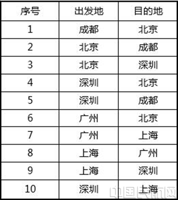 附:一周内去哪儿网航班延误险购买量TOP10航线