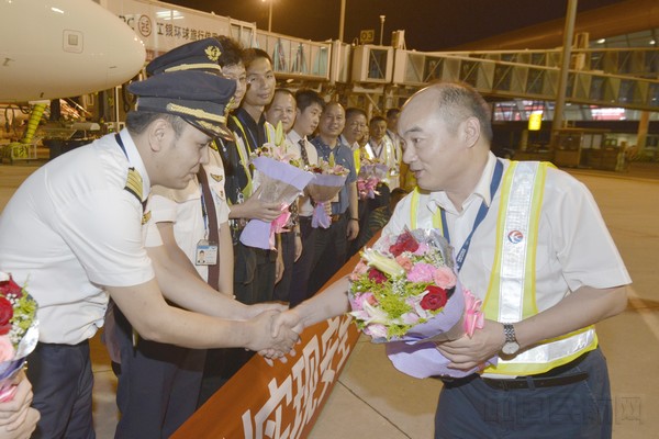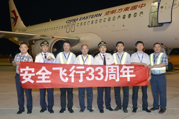 中国民航网 通讯员杨帅 报道:7月20日晚23点25分,伴随着从上海浦东飞往合肥的MU5467航班平稳降落在合肥新桥国际机场。东航安徽分公司顺利实现了安全飞行33周年,保持了平稳的安全形势。安徽分公司总经理张厚新,党委书记王忠华及分公司领导班子成员带领各单位负责人一起,为机组和一线工作人员送上鲜花与祝福。