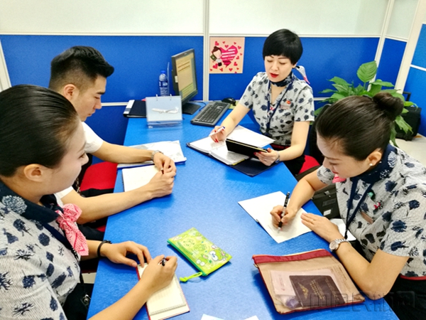 酷暑中旺季生产,航班密集,客舱服务任务繁重,客舱服务细节缺失、有效服务质量下降的隐患加大。旺季生产里的乘务员,跟陀螺一样不停的在转动。作为客舱服务中的多面手,东航安徽分公司乘务长谢娜每次在航前准备会上,都会就航班中服务细节提出要求,切实将服务职责细化到人,细化到事。在航班中,谢娜身先士卒,积极开展服务,用实际行动去感召组员们,对组员们的服务技巧给予建议,以确保客舱服务的有效化,高质量化。