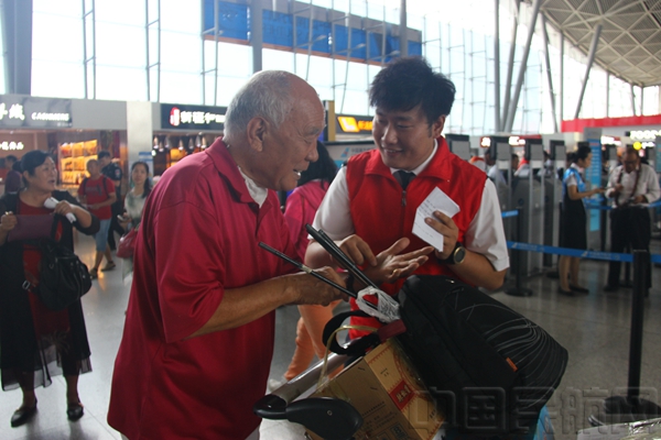 陈晨协助老人办理值机