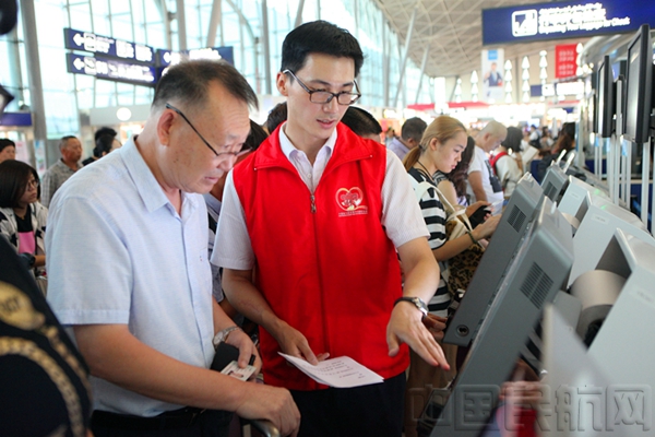 志愿者协助办理自助值机