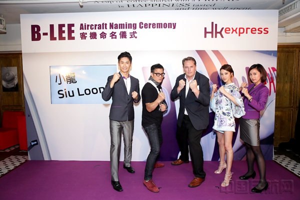 为隆重其事,香港快运航空特別于今天举行「小龙」客机命名活动,并特別邀请了李小龙的超级粉丝、本地艺人欧锦棠出席,分享李小龙的哲理名言及展示其招牌格斗招式,向这位一代宗师致敬。