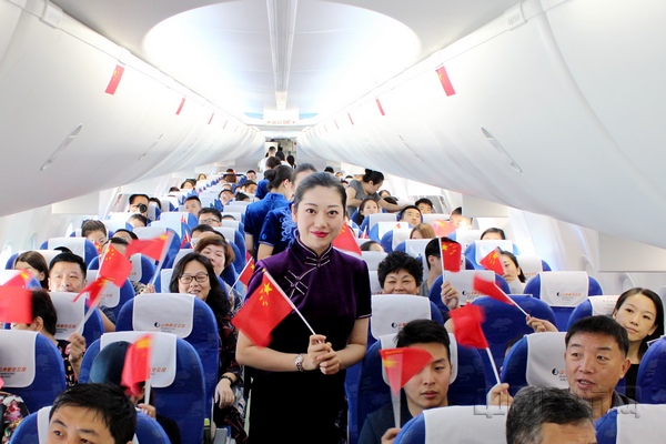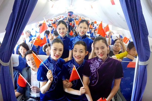 节日期间,山航航班上举办了丰富多彩的特色服务活动,山航乘务员身着传统服装旗袍,为旅客们送上了节日特色美食,并开展了抽奖送祝福等互动活动,与旅客共庆国庆与中秋佳节,幸运旅客纷纷获得了山航提供的精美礼品,让3万英尺高空的旅程充满了喜庆祥和的节日气氛。