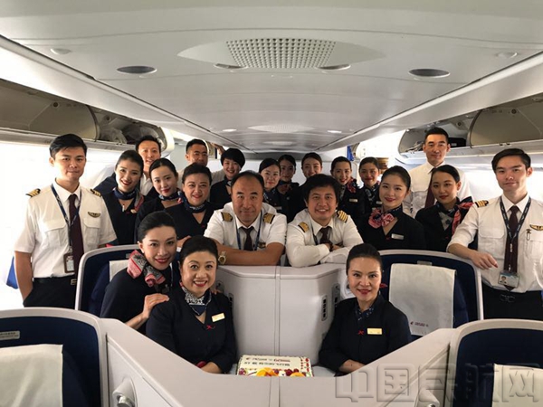 中国民航网 通讯员栾佩佩、李敏 报道:2017年10月22日,对于东航西北分公司的客舱经理范丽红来说,是个特殊的日子,这是完成37年飞行生涯,跨越第38个年头的飞行,这也是范丽红执行的乘务生涯中的最后一个航班MU2181/2,西安--昆明--西安航班,这又是一次极具意义的飞行,这一天,范丽红的丈夫-机组何永田、儿子-机务何超、儿媳-乘务长陈蓉也陪伴着她完成告别蓝天的最后一个航班,随着飞机平稳降落在西安咸阳国际机场,范丽红最后一次发出指令,与乘务员严谨认真的完成了舱门开启程序。早已等候在舱门外的相关领导为范丽红送上了鲜花和祝福。