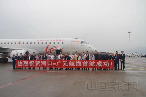 中国民航网 通讯员农之天 报道:10月29日中午11时,GX8967航班平稳降落在广元盘龙机场,北部湾航空新航线“海口=广元”首航成功。该航线由E190机型执飞,班期为每周一、三、五、七。“海口=广元”航线去程航班号为GX8967,09:15从海口起飞,11:40到达广元;回程航班号为GX8968,12:20从广元离港,14:45抵达海口。