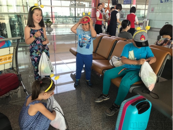 在首都、南苑、三亚、南通、兰州、昆明等多家机场都出现了这一群小宝贝,孩子们开心地从“不做熊孩子”小背包里拿出玩具、画笔和笔记本,天马行空地尽情涂画、玩耍。