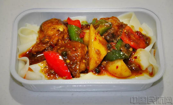 “没想到飞机上还能吃到新疆大盘鸡拌面,太给力了!”乌鲁木齐地窝堡机场起飞不久的航班上,乘客们小心翼翼地打开热腾腾的餐盒,一份味道鲜美的新疆特色大盘鸡拌面呈现在眼前。