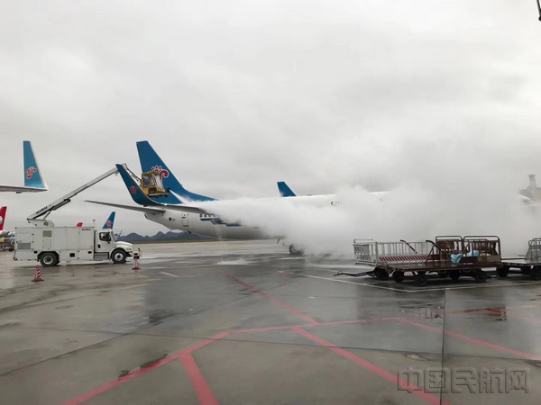 据统计,仅8日当天上午已消耗除冰液约10吨,为15架次航班完成除冰工作,期间贵阳机场所有南航航班均正常起飞,延误时间未超过1小时。同时,除保障本公司航班外,南航贵州公司机务还为过站的厦门航空、江西航空等航空公司航班进行除冰,全力保障飞机安全、顺利出港,护航往来贵州的旅客平安出行。