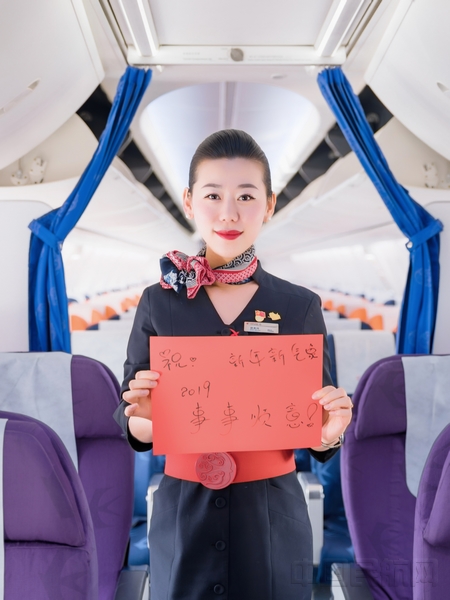 在新的一年,祝愿客舱家人、同事和旅客们:猪年吉祥行大运、猪事平安好运到、万事顺心步步高!