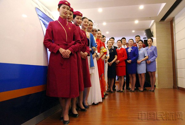 从银冠胜雪的苗族服饰到婀娜传统的中国旗袍、从深青色的“蝴蝶发网”到韩式盘发、从曾经流行的“柳叶眉”到如今的“知性眉”,还有现在以“碧水红棉 彩云蓝天”为主题的制服,加上“自选”制服,南航贵州公司空乘人员共更换过3次空乘制服、四季衣着款式多达10余种。