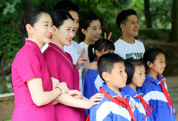 这是自2016年以来,南航贵州公司与长期定点帮扶的当地留守儿童学校——贵阳南明区嘉润小学开展的第4次爱心公益扶贫助教活动,许多当年参加过爱心活动的学童也长高了、长大了,曾经戴着空乘帽许愿“长大后要当南航空姐”的小女孩敏敏更是一把抱住了乘务员们,久久不舍得放开。在孩子们眼中,亲切、热情的南航的大哥哥、大姐姐们即像老师,更是亲人。