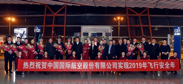 《中国民航报》、中国民航网 记者陈嘉佳 通讯员吕俊杰 报道:2019年12月31日晚,随着北京总部、分公司、投资企业的航班陆续回到北京,中国国际航空公司顺利实现2019飞行安全年。中航集团(国航股份)董事长、党组(党委)书记蔡剑江,总经理(总裁)、党组(党委)副书记宋志勇分别带队前往北京大兴国际机场和北京首都国际机场迎接归航的机组成员,并到机坪慰问奋战在现场的机务和地面保障人员。中航集团(国航股份)党组(党委)副书记冯刚,副总经理(副总裁)、党组成员(党委常委)马崇贤、赵晓航,纪检监察组组长(纪委书记)、党组成员(党委常委)谭焕民,国航股份副总裁、党委常委王明远、刘铁祥及薛亚松、张华、肖烽、王迎年等领导参加慰问。
