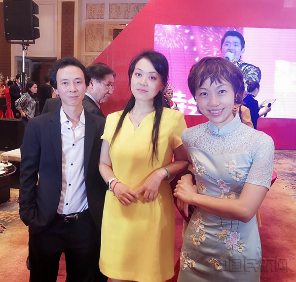 东航马尼拉营业部团队(左起依次:魏立宇,米良乡,陈毓)参加我国大使馆活动,与当地侨界建立密切联系
