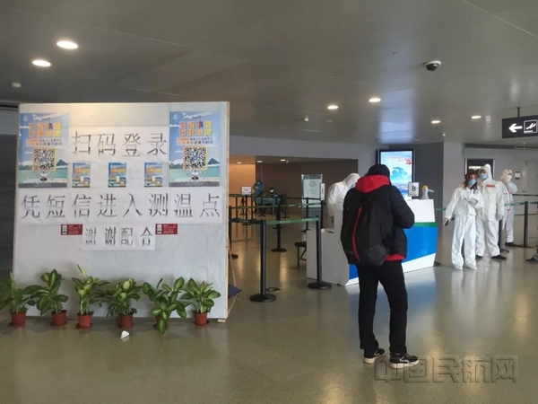 上海两场的到港旅客测温点,均需凭上海健康云的填报完成信息才能进入。东航供图