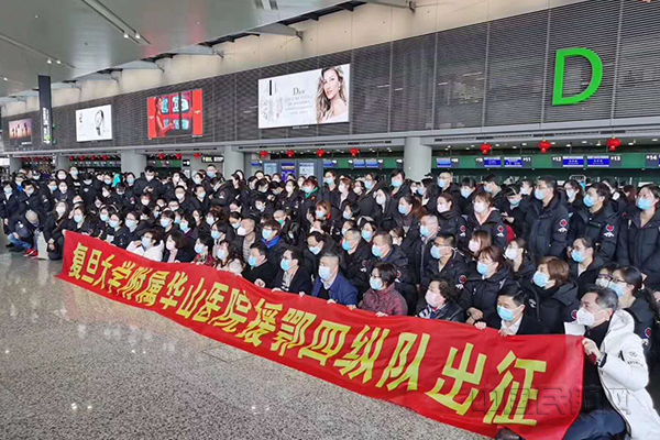搭乘东航航班从虹桥机场出发的上海新一批援鄂医疗队