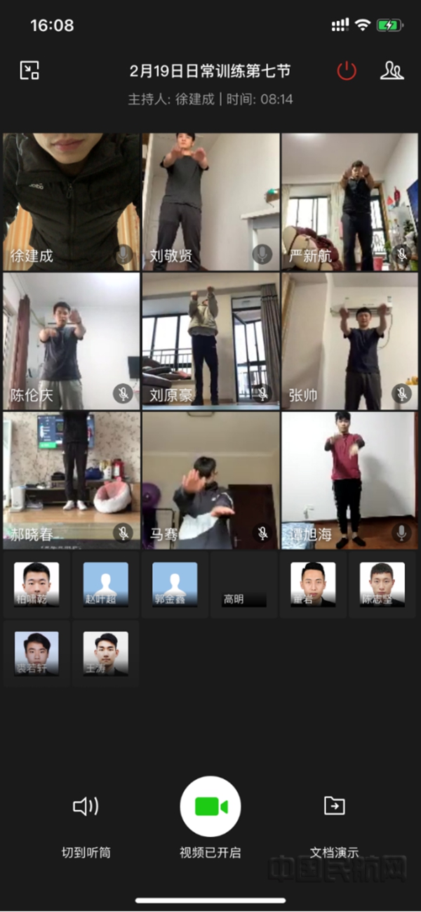 2月17日起,训练组正式组织开展有统筹、有规划、有质控的线上安全员日常训练。通过企业微信视频直播平台,带领当天所有参训人员共同训练。教员随时可以进行训练指导和监督,训练效果丝毫不亚于线下集中训练,既有效保证了每位安全员进入训练状态,又避免因懈怠懒散等心态导致体能下滑。