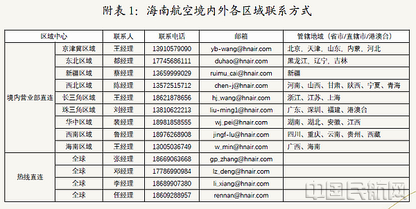 附表1:海南航空境内外各区域联系方式