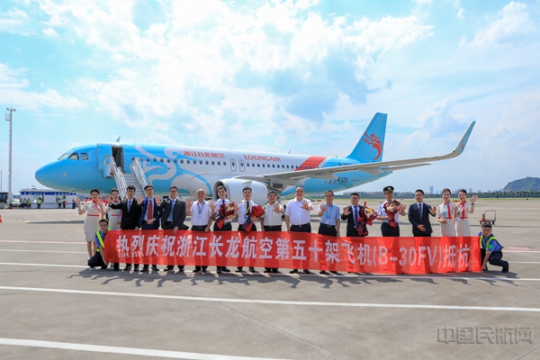 《中国民航网》、中国民航网 记者徐业刚 通讯员王净 报道:7月23日14时23分,一架注册号为B-30FV的空客A320neo飞机平稳抵达杭州萧山国际机场,至此,长龙航空机队规模达到50架,其中包含47架空客A320客机和3架波音737货机,这标志着长龙航空正式迈入我国中型航空公司行列。