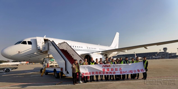 中国民航网讯:12月21日,海航金鹿再次顺利完成一架超大型托管公务机(空客ACJ)的引进工作,并在上海虹桥国际机场举办了接机仪式。