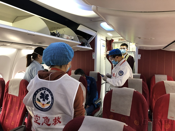 海南航空工作人员为病患旅客及陪同人员安排优先登机