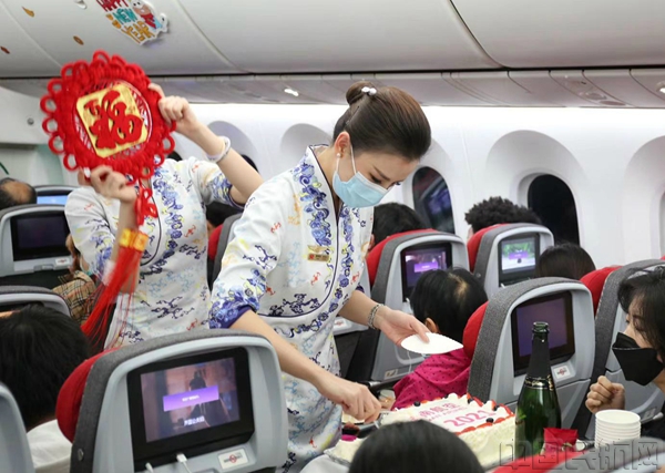 最后,全舱旅客与乘务组举杯共庆,合唱歌曲“明天会更好” ,在歌声中回味昨日的不凡和感动,用歌声唱出对新春的热情,共同期待明天会更好,为祖国繁荣昌盛的明天喝彩加油。在新的一年里,海南航空仍将不忘初心,真情相伴,搭载旅客飞往幸福的目的地,为海南自贸港建设交上一份满意的答卷。