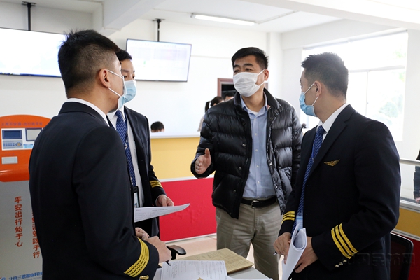 北部湾航空总经理李荣魁对GX8908航班机组进行航前检查