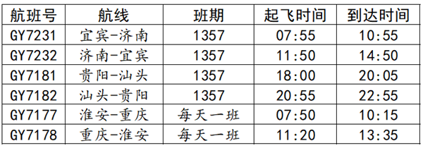 中国民航网讯:为满足广大旅客的出行需求,多彩贵州航空于3月28日成功开通“宜宾—济南”、“贵阳—汕头”、“淮安—重庆”航班信息如下: