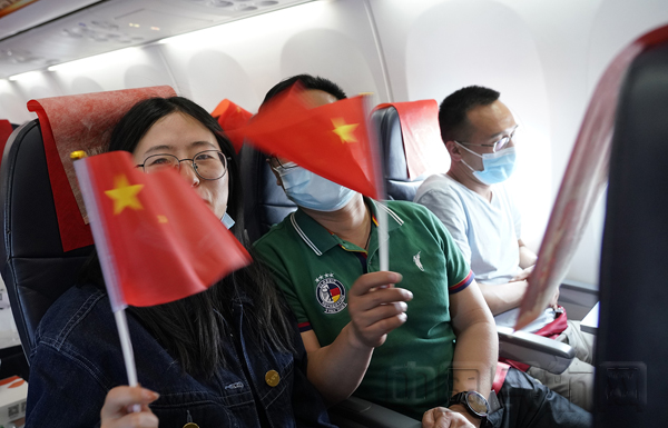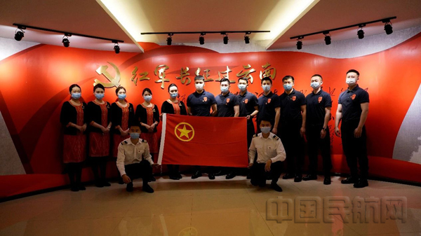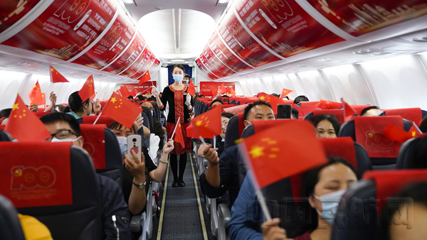 当天执飞的飞行员、安全员、乘务员均由党员骨干组成。他们佩戴党徽,精神饱满地与同机旅客在万米高空共同回望党的奋斗百年路,展望启航新征程。