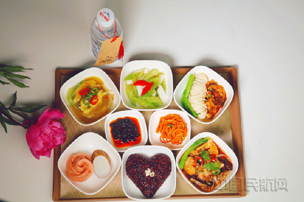 在当天的主题航班上,乘务组为每位旅客准备了具有创意的鲜花菜品“健康妈妈餐”,这是川航客舱部继前期“熊猫儿童餐”“养生老年餐”“养颜女神餐”之后升级推出的又一款产品,搭配花朵形糕点和小菜、心形紫米饭,色泽温暖,健康营养。