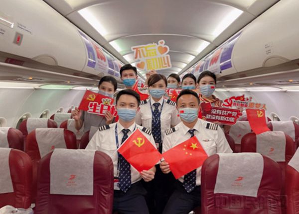 中国民航网 通讯员岳丽鹃 报道:思党情,报党恩,为增强全体党员的荣誉感和使命感,为深情回顾党的奋斗历史,激发人民爱国爱党、敬业乐群的热情。首都航空JD5595北京大兴—梅州、JD5127杭州—昆明航班上,举办了建党百年庆红色航班活动,在万米高空以特别的形式向党的百年华诞献礼。