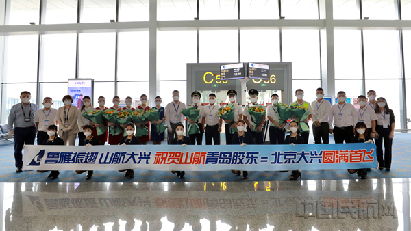 《中国民航报》、中国民航网 记者许晓泓 通讯员姜寿涵、郭佳琦、李玥峥 报道:9月6日8时5分,山航SC4857航班满载希冀与梦想,伴着晨雾从青岛胶东机场起飞,飞往崭新的目的地——北京大兴国际机场。9时4分,飞机在大兴机场平稳落地,标志着山航首条北京大兴航线顺利开通。