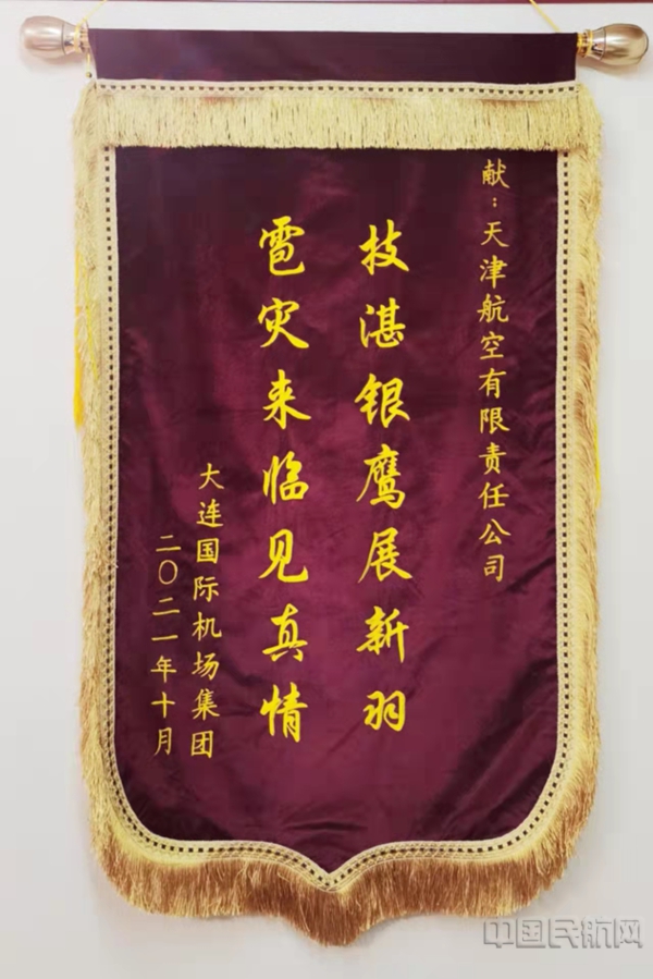 天津航空大连基地收到大连机场集团赠送的锦旗